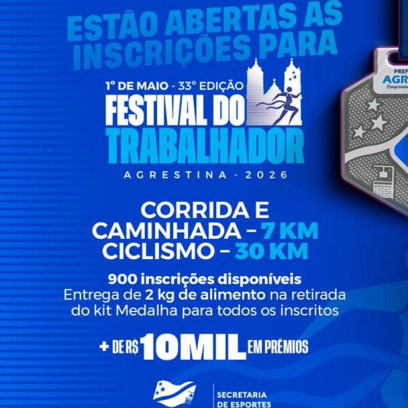 33º FESTIVAL DO TRABALHADOR - AGRESTINA 2026 CORRIDA DE RUA