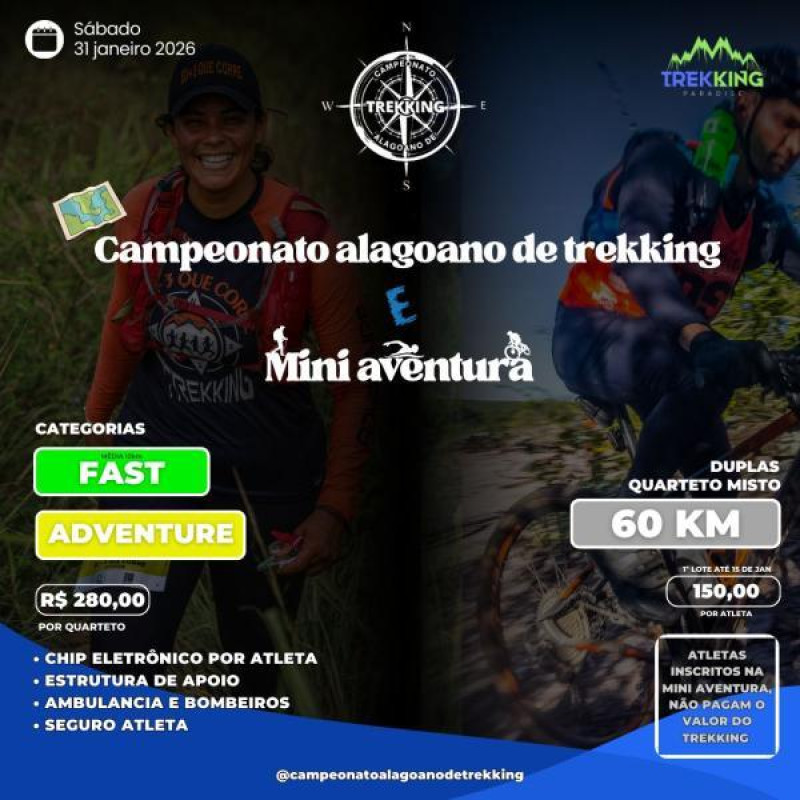 Faltam: 2 dias Saiba Mais1ª ETAPA DO CAMPEONATO ALAGOANO DE TREKKING + MINI AVENTURA 2026 TREKKING