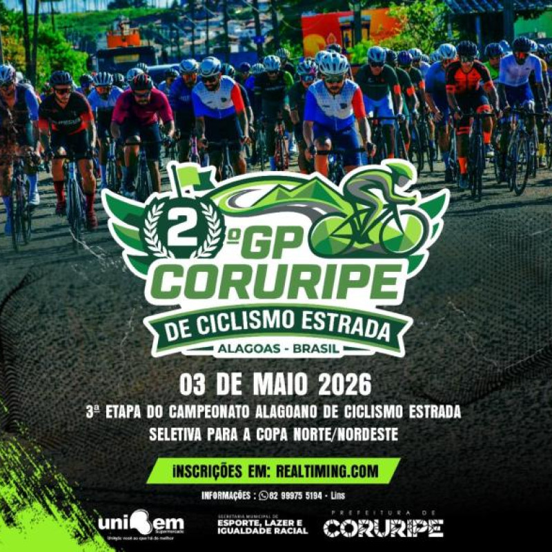 Faltam: 23 dias Saiba Mais2º GP CORURIPE DE CICLISMO DE ESTRADA CICLISMO DE ESTRADA