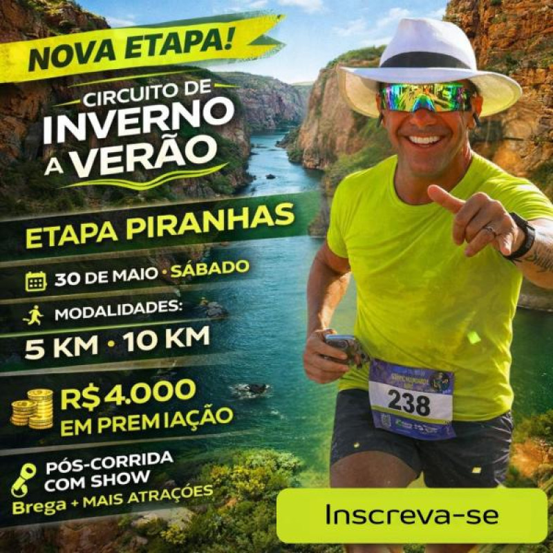 Faltam: 58 dias Saiba MaisCIRCUITO DE INVERNO A VERÃO - ETAPA PIRANHAS CORRIDA DE RUA
