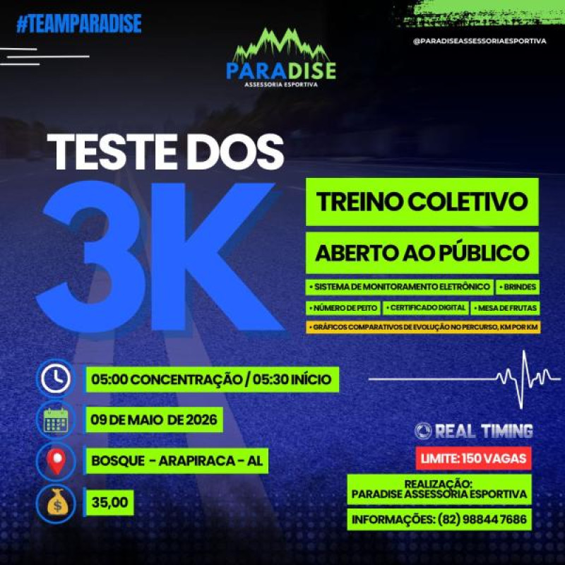 Faltam: 16 dias Saiba MaisTESTE 3KM - PARADISE ASSESSORIA CORRIDA DE RUA